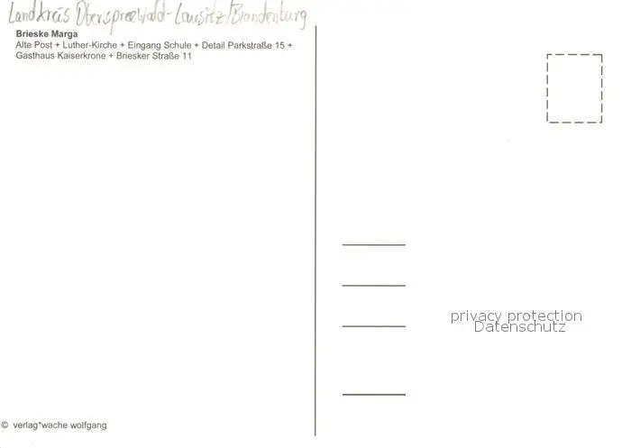 Marga Brieske Alte Post Lutherkirche Schule Parkstrasse Gasthaus Briesker Strasse 11 Brieske Senftenberg postalisch nicht gelaufen nach 1965 Erhaltung siehe scans [FriedD77] Frierer