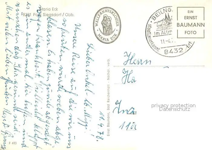 Maria_Eck Wallfahrt der Trachtenvereine Teilansichten Maria_Eck postalisch gelaufen 1978 Erhaltung siehe scans [WerneD78] WernPID7