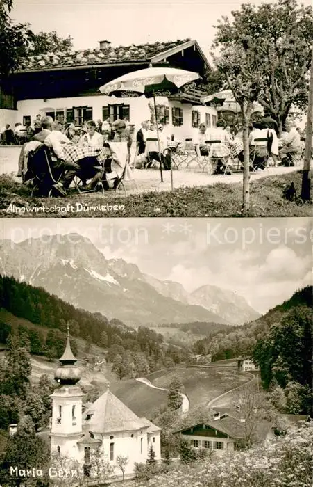 Maria_Gern Kategorie Alte Ansichtskarten Postkarten bx93084 Maria_Gern Almwirtschaft Duerrlehen Terrasse Kirche Maria_Gern postalisch nicht gelaufen Erhaltung siehe scans [WerneD78]