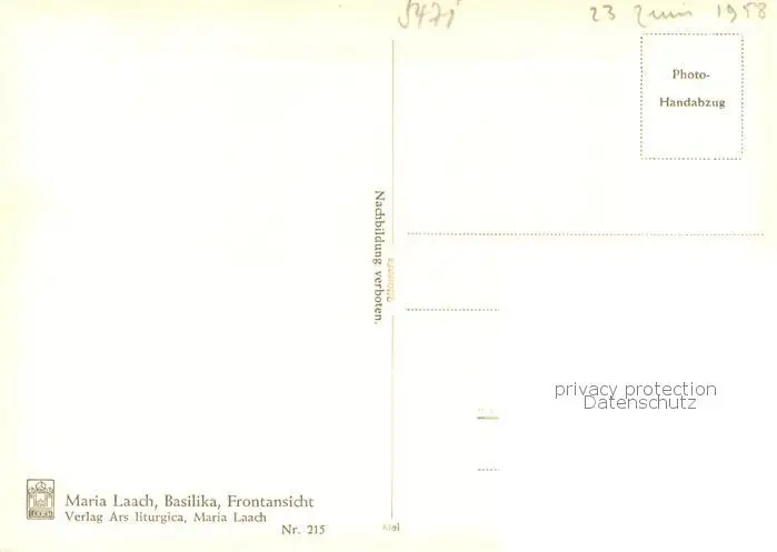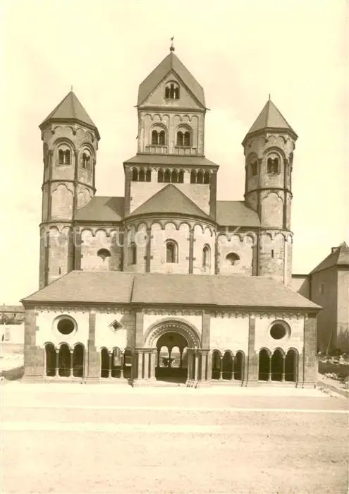 Maria_Laach__Kloster Basilika Frontansicht postalisch nicht gelaufen 1958 Erhaltung siehe scans [FriedD77] Frierer