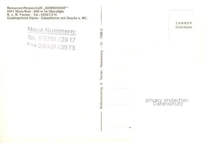 Maria_Rain_Allgaeu Restaurant Pension Cafe Sonnenhof Gastraeume Maria_Rain_Allgaeu postalisch nicht gelaufen nach 1965 Erhaltung siehe scans [WerneD78] WernPID7