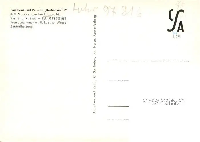 Mariabuchen Gasthaus Pension Buchenmuehle Gastraum Blick zur Wallfahrtskirche Mariabuchen postalisch nicht gelaufen nach 1965 Erhaltung siehe scans [FriedD77] Frierer