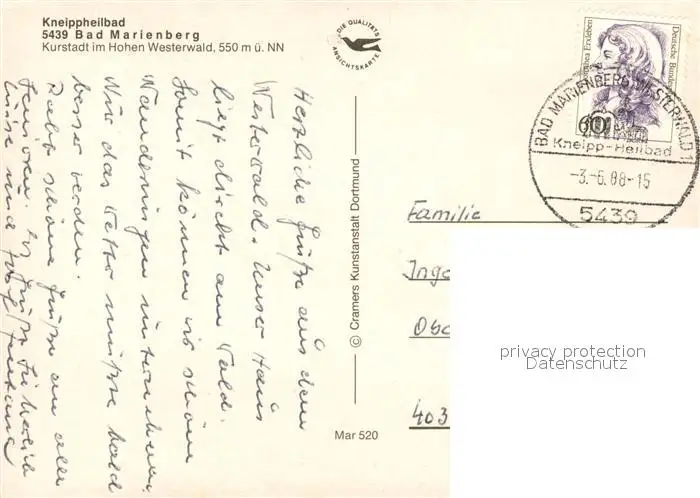 Marienberg_Westerwald Kirche Panorama Marienberg_Westerwald postalisch gelaufen 1988 Erhaltung siehe scans [KathaD81] Kathoren