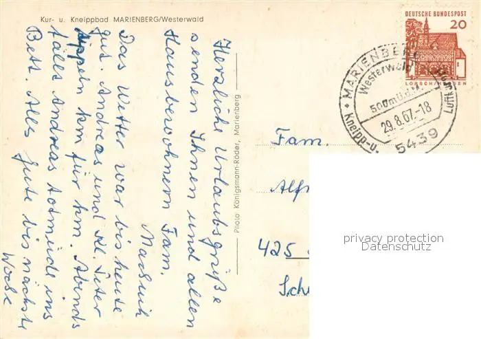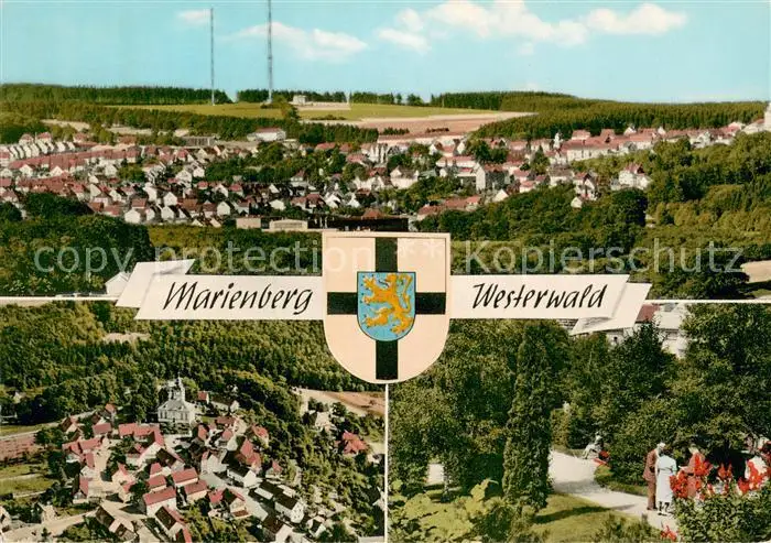 Marienberg_Westerwald Kategorie Alte Ansichtskarten Postkarten bx94385 Marienberg_Westerwald Panorama Kneippbad Parkanlagen Fliegeraufnahme Marienberg_Westerwald postalisch gelaufen 1967 Erhaltung siehe scans [FriedD77]