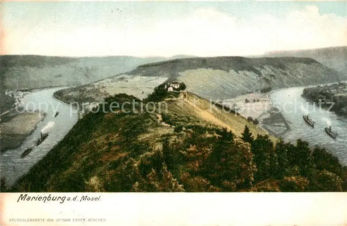 Marienburg_Mosel Panorama Marienburg Mosel postalisch nicht gelaufen bis 1920 Erhaltung siehe scans [KathaD81] Kathoren