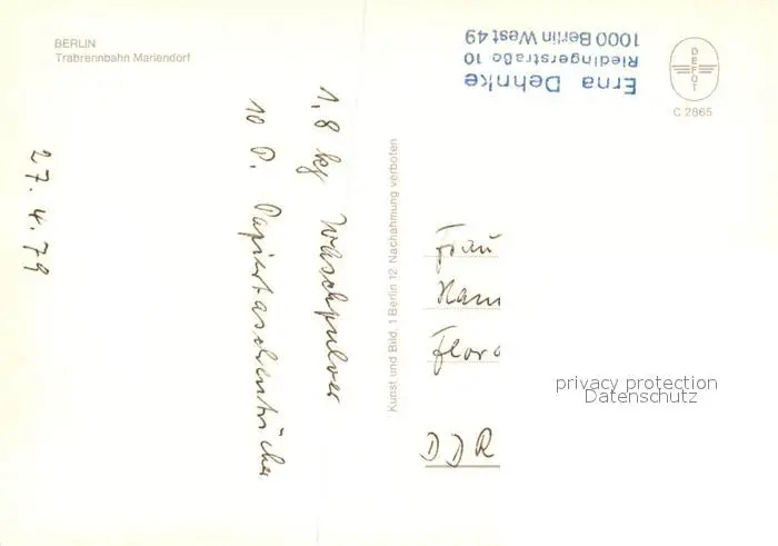Mariendorf_Berlin Trabrennbahn Pferdesport Mariendorf Berlin postalisch nicht gelaufen 1979 Erhaltung siehe scans [FriedD77] Frierer