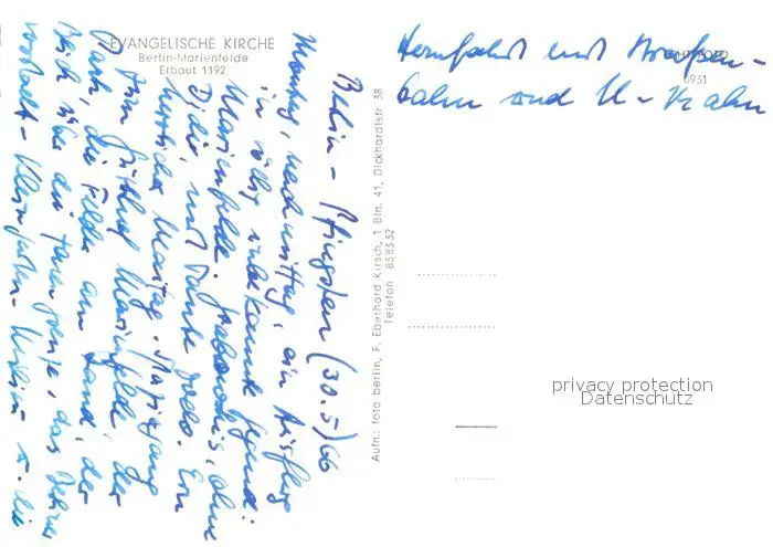 Marienfelde_Berlin Evangelische Kirche Marienfelde Berlin postalisch nicht gelaufen 1966 Erhaltung siehe scans [FriedD77] Frierer