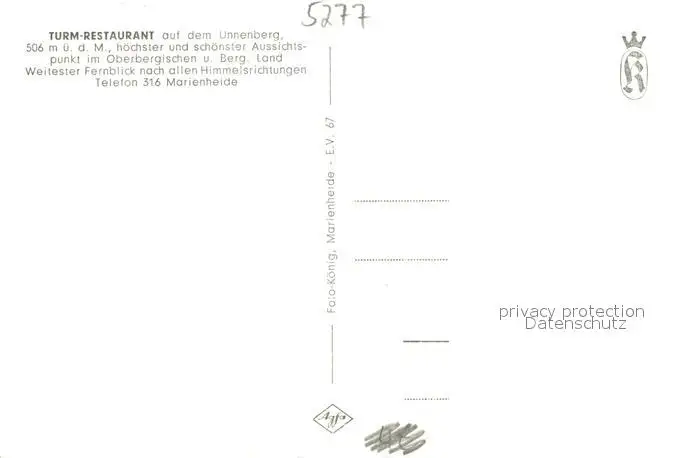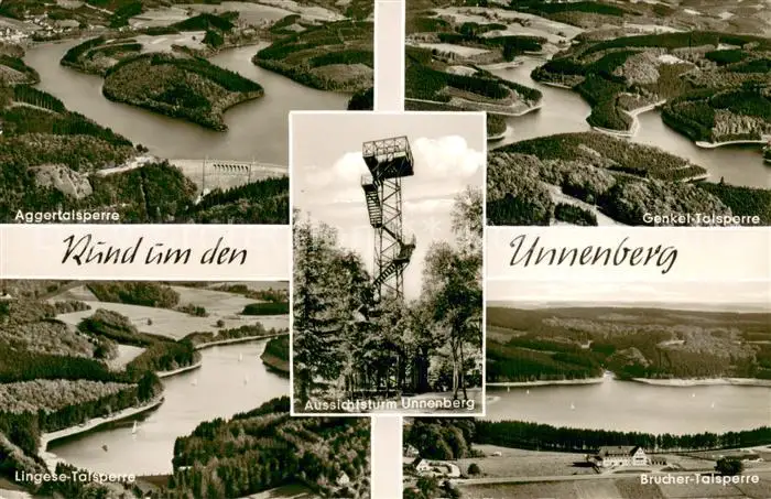 Marienheide Aussichtsturm Unnenberg Talsperren Oberbergisches Land Marienheide postalisch nicht gelaufen nach 1965 Fliegeraufnahme Erhaltung siehe scans [FriedD77] Fliegeraufnahme Frierer