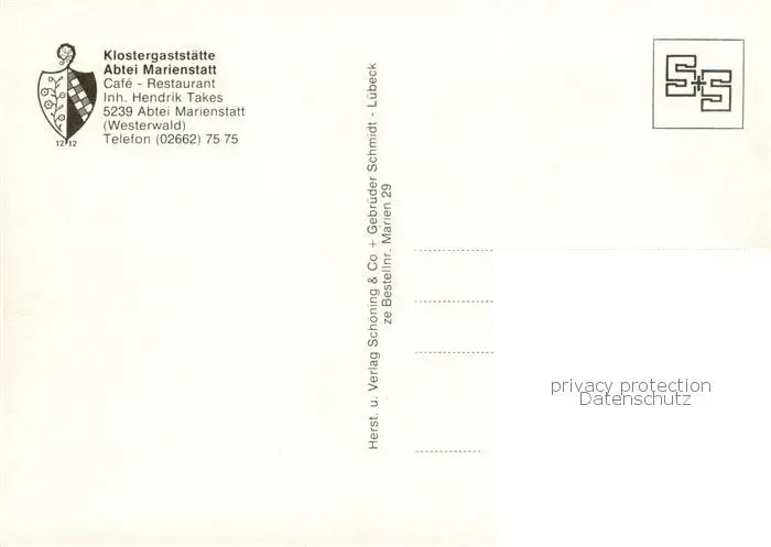Marienstatt_Westerwald Kloster Gaststaette Abtei Marienstatt Gastraeume Terrasse Marienstatt_Westerwald postalisch nicht gelaufen nach 1965 Erhaltung siehe scans [FriedD77] Frierer