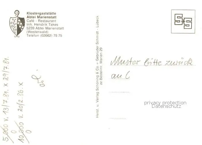 Marienstatt_Westerwald Klostergaststaette Abtei Marienstatt Gastraeume Marienstatt_Westerwald postalisch nicht gelaufen nach 1965 Erhaltung siehe scans [FriedD77] Frierer