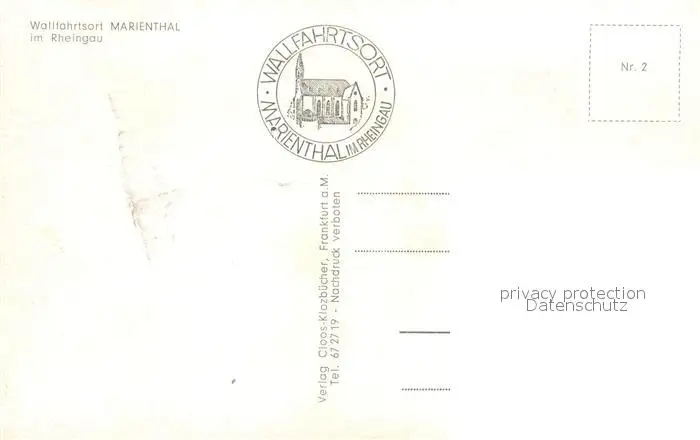 Marienthal_Rheingau Wallfahrtsort Marienthal Marienthal Rheingau postalisch nicht gelaufen 1921-1965 Erhaltung siehe scans [LiesaD40] LiesID40