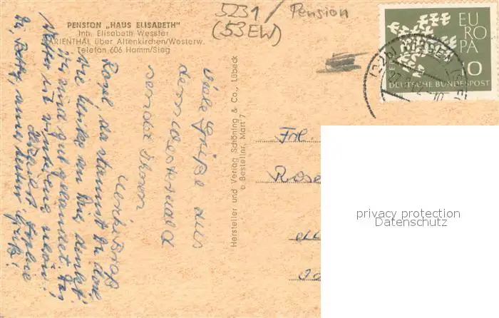 Marienthal_Westerwald Ansicht vom Waldrand aus Marienthal_Westerwald postalisch gelaufen 1962 Erhaltung siehe scans [FriedD77] Frierer