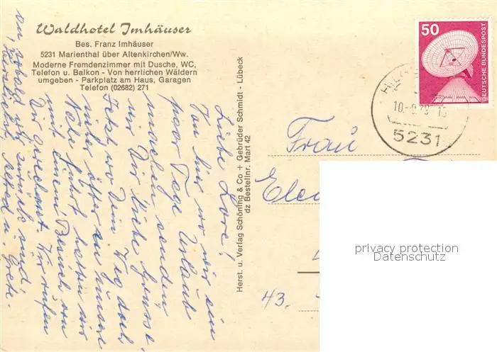 Marienthal_Westerwald Waldhotel Imhaeuser Marienthal_Westerwald postalisch gelaufen 1979 Erhaltung siehe scans [FriedD77] Frierer