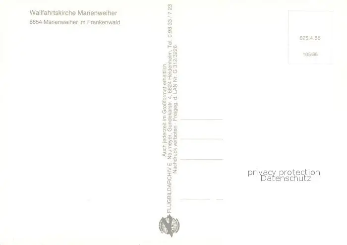 Marienweiher Fliegeraufnahme mit Wallfahrtskirche Marienweiher Marienweiher postalisch nicht gelaufen nach 1965 Erhaltung siehe scans [WerneD78] WernPID7