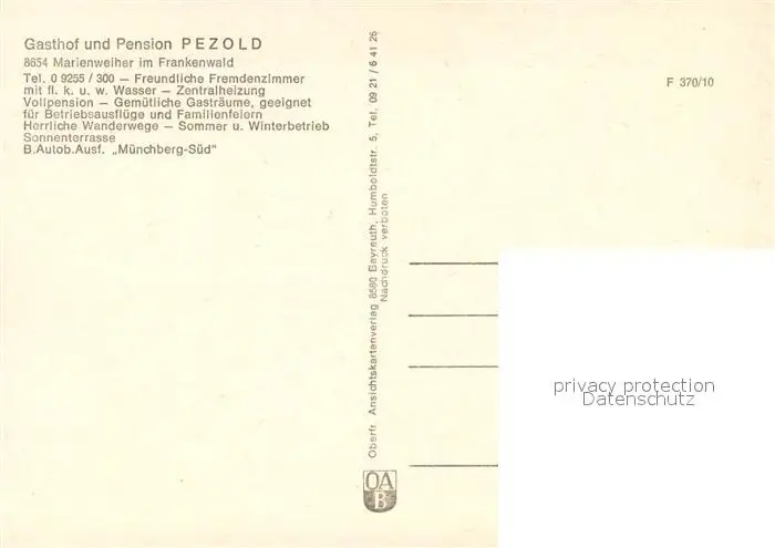Marienweiher Gasthof Pension Pezold Panorama Gastraum Kirche Marienweiher postalisch nicht gelaufen nach 1965 Erhaltung siehe scans [WerneD78] WernPID7