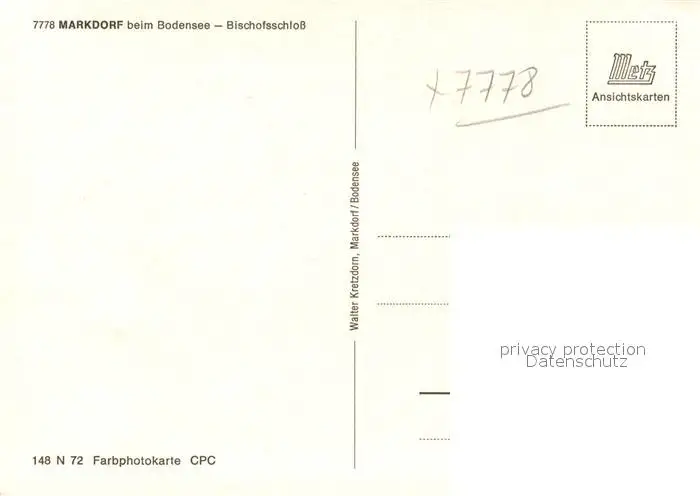 Markdorf_Bodensee Bischofsschloss Markdorf Bodensee postalisch nicht gelaufen nach 1965 Erhaltung siehe scans [FriedD77] Frierer