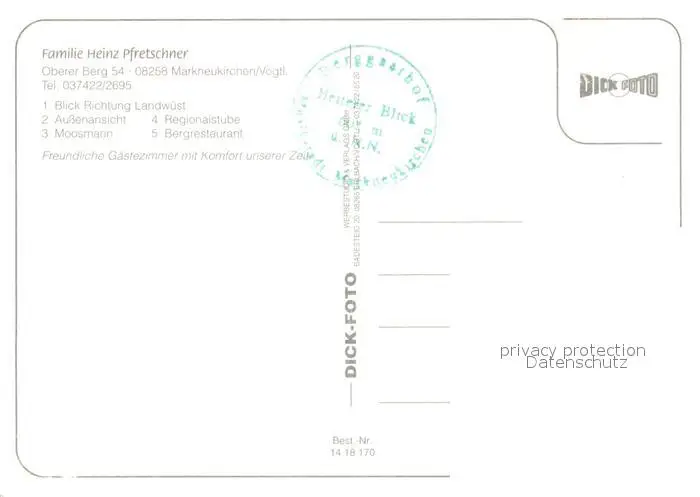 Markneukirchen Berggasthof Heiterer Blick Restaurant Landschaftspanorama Markneukirchen postalisch nicht gelaufen nach 1965 Erhaltung siehe scans [FriedD77] Frierer