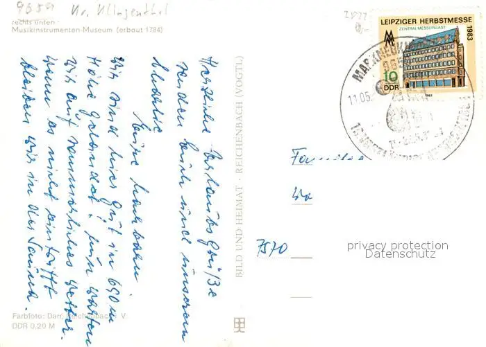 Markneukirchen Ortsansicht mit Kirche Musikinstrumenten Museum 18. Jhdt. Markneukirchen postalisch gelaufen 1980 Erhaltung siehe scans [FriedD77] Frierer