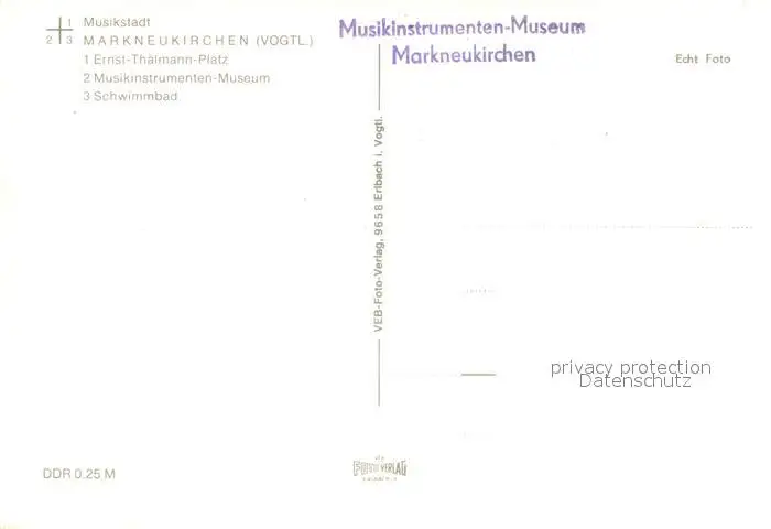 Markneukirchen Panorama Ernst ThaelmannPlatz Musikinstrumenten Museum Schwimmbad Markneukirchen postalisch nicht gelaufen nach 1965 Erhaltung siehe scans [WerneD78] WernPID7