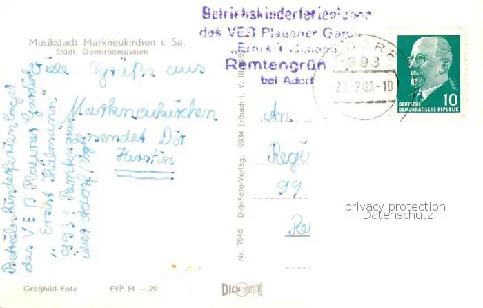 Markneukirchen Staedt Gewerbemuseum Markneukirchen postalisch gelaufen 1969 Erhaltung siehe scans [WerneD78] WernPID7