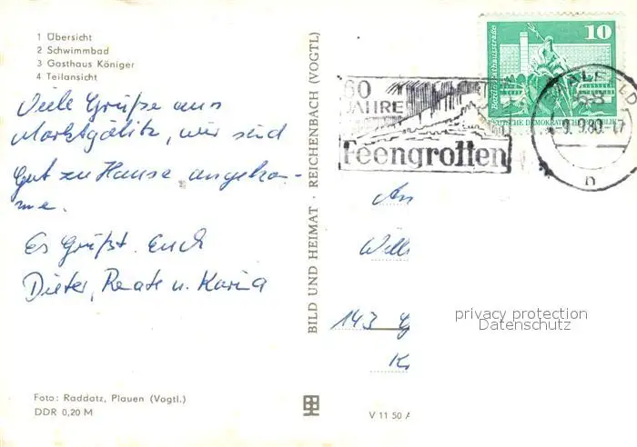 Marktgoelitz Panorama Schwimmbad Gasthaus Teilansicht Marktgoelitz postalisch gelaufen 1980 Erhaltung siehe scans [FriedD77] Frierer