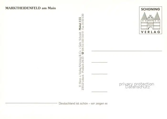 Marktheidenfeld Mainanlage Ortspanorama Marktbrunnen Marktplatz Strassencafé Marktheidenfeld postalisch nicht gelaufen nach 1965 Erhaltung siehe scans [FriedD77] Frierer