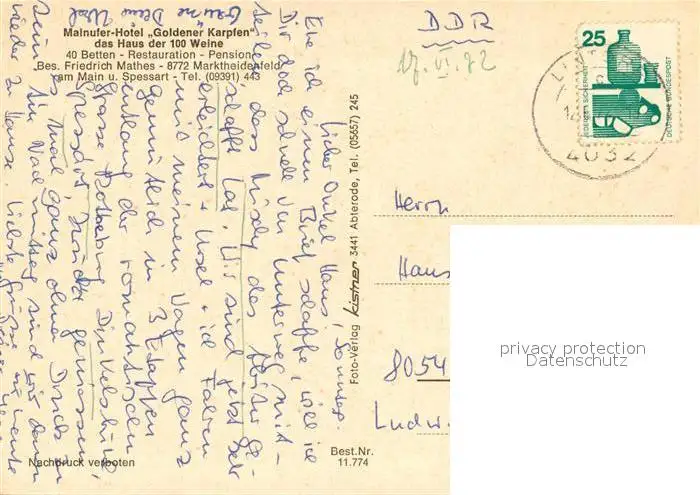 Marktheidenfeld Mainufer Hotel Goldener Karpfen Restaurant Ausflugsdampfer Marktheidenfeld postalisch gelaufen 1972 Erhaltung siehe scans [FriedD77] Frierer