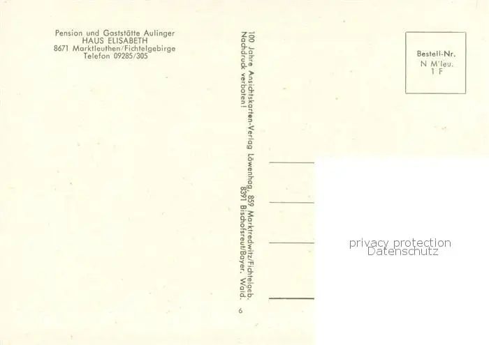 Marktleuthen Pension-Gaststaette Aulinger Aussenansicht Haus Elisabeth Marktleuthen postalisch nicht gelaufen nach 1965 Erhaltung siehe scans [LiesaD40] LiesID40