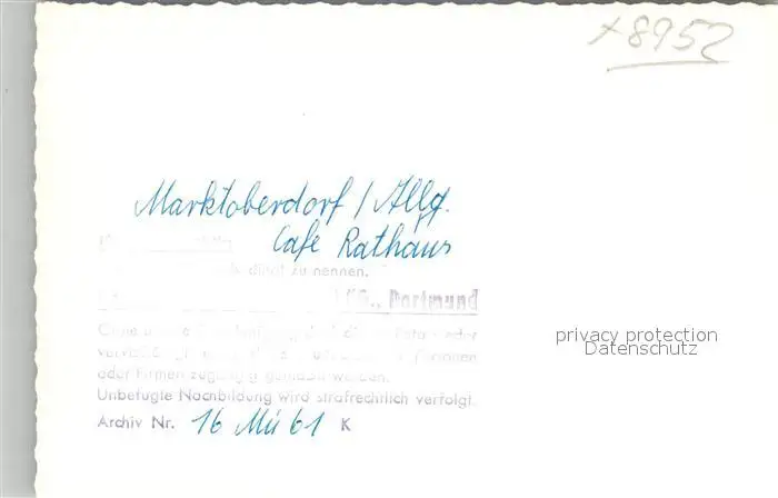 Marktoberdorf Cafe Rathaus Marktoberdorf postalisch nicht gelaufen 1961 Verlagsrohabzug (keine Postkartenrueckseite) Erhaltung siehe scans [WerneD78] Verlagsrohabzug (keine Postkartenrueckseite) WernPID7