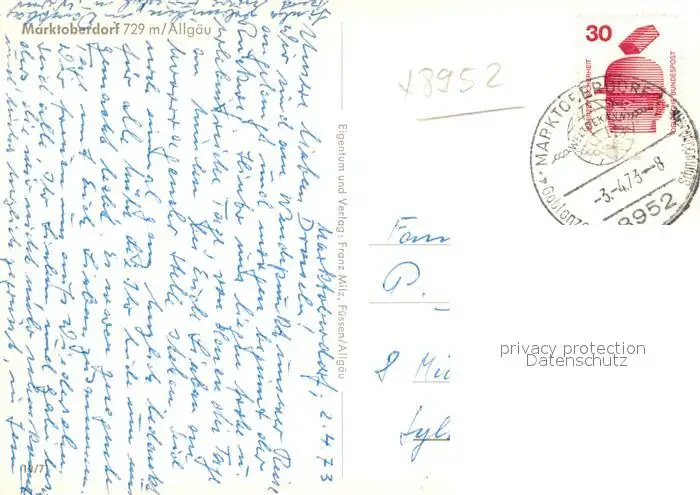Marktoberdorf Panorama mit Kirche Marktoberdorf postalisch gelaufen 1973 Erhaltung siehe scans [WerneD78] WernPID7