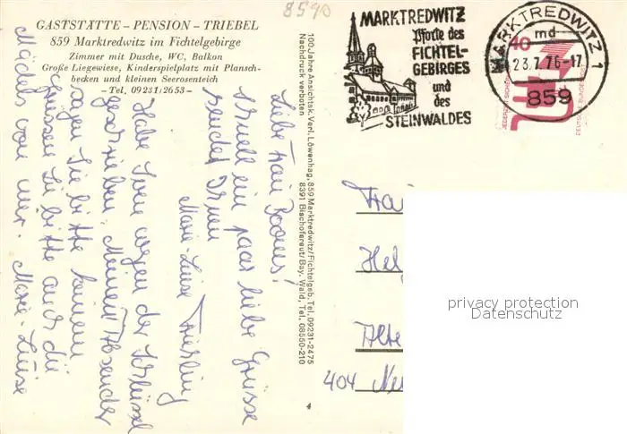 Marktredwitz Gaststaette Pension Triebel Marktredwitz postalisch gelaufen 1976 Erhaltung siehe scans [FriedD77] Frierer