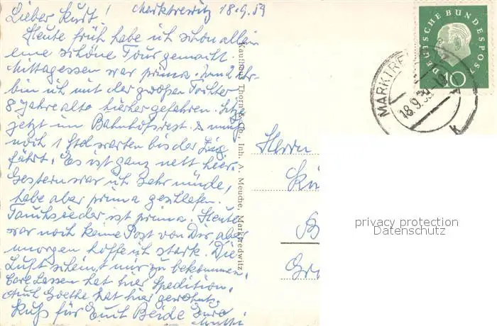 Marktredwitz Gesamtansicht Ortszentrum Kirche Freibad Felsen Marktredwitz postalisch gelaufen 1959 Erhaltung siehe scans [FriedD77] Frierer