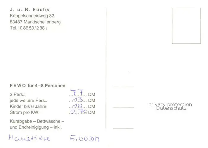 Marktschellenberg J. und R. Fuch Ferienhaus Stadlerlehen Marktschellenberg postalisch nicht gelaufen nach 1965 Werbekarte (keine Postkarte) Erhaltung siehe scans [LiesaD40] Werbekarte (keine Postkarte) LiesID40
