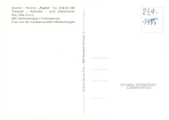 Marktschorgast Gasthof Pension Regina Gaststube Bar Gaestezimmer Marktschorgast postalisch nicht gelaufen 1985 Erhaltung siehe scans [WerneD78] WernPID7