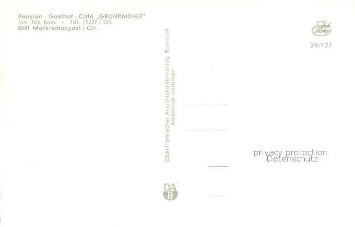 Marktschorgast Pension Gasthof Grundmuehle Marktschorgast postalisch nicht gelaufen nach 1965 Erhaltung siehe scans [WerneD78] WernPID7