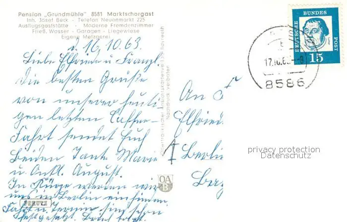 Marktschorgast Pension Grundmuehle Ortsansicht Wirsberg Marktschorgast postalisch gelaufen 1965 Erhaltung siehe scans [WerneD78] WernPID7