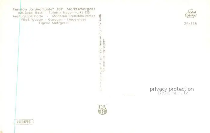Marktschorgast Pension Grundmuehle Schorgasttal Marktschorgast postalisch nicht gelaufen nach 1965 Erhaltung siehe scans [WerneD78] WernPID7