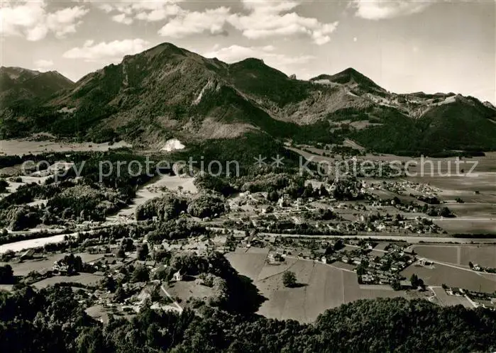 Marquartstein Gesamtansicht mit Hochplatte Bayerische Alpen Fliegeraufnahme Marquartstein postalisch nicht gelaufen nach 1965 Erhaltung siehe scans [FriedD77] Frierer