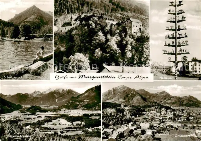 AK / Ansichtskarte Marquartstein Schwimmbad Burg Maibaum Panorama Marquartstein