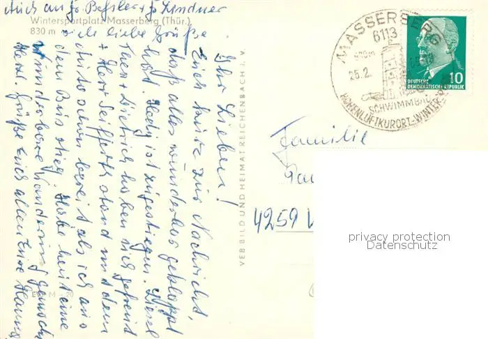 Masserberg Aussichtsturm Winterpanorama Masserberg postalisch gelaufen 1965 Erhaltung siehe scans [WerneD78] WernPID7