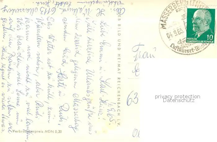 Masserberg Kategorie Alte Ansichtskarten Postkarten bx47571 Masserberg Turmblick Masserberg postalisch gelaufen 1965 Erhaltung siehe scans [LiesaD40]