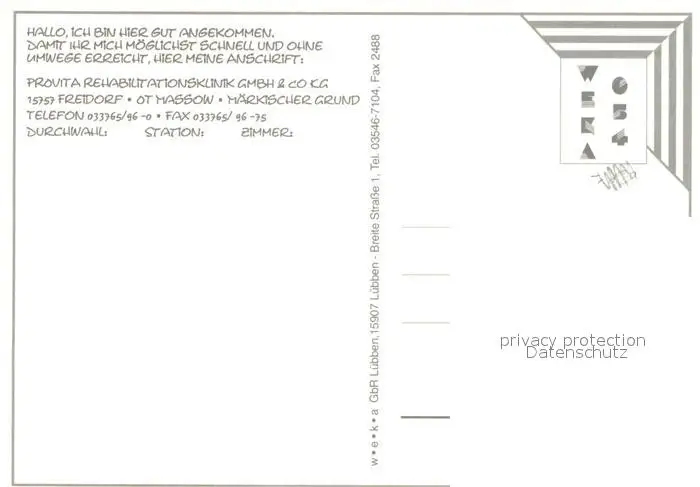 Massow Pro Vita Reha-Klinik Massow postalisch nicht gelaufen nach 1965 Erhaltung siehe scans [FriedD77] Frierer
