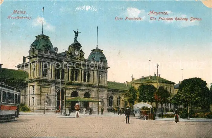 Mayence Gare Principale Tram Hauptbahnhof Strassenbahn Mayence postalisch nicht gelaufen 1922 Erhaltung siehe scans [FriedD77] Frierer