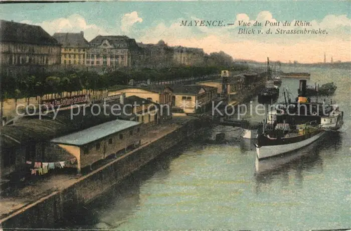 Mayence Vue du Pont du Rhin Blick von der Strassenbruecke Rheindampfer Mayence postalisch nicht gelaufen 1924 Erhaltung siehe scans [FriedD77] Frierer