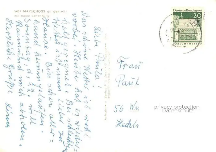 Mayschoss Ruine Sattenburg Laach postalisch gelaufen nach 1965 Erhaltung siehe scans [KathaD81] Kathoren