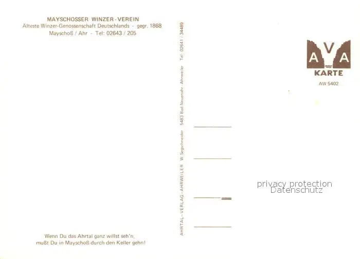 Mayschoss Weinkeller Laach postalisch nicht gelaufen nach 1965 Erhaltung siehe scans [KathaD81] Kathoren