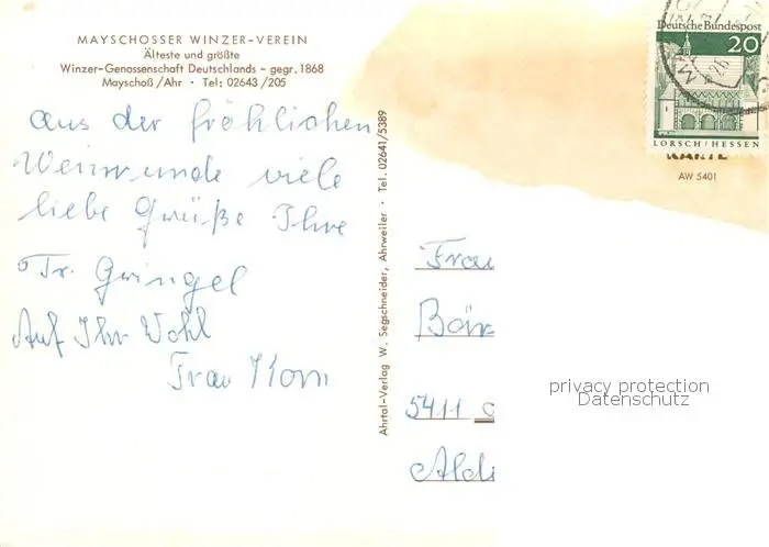 Mayschoss Winzer Genossenschaft Mayschoss Gastraum Mayschoss postalisch gelaufen nach 1965 Erhaltung siehe scans [WerneD78] WernPID7