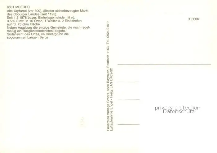 Meeder Fliegeraufnahme Meeder postalisch nicht gelaufen nach 1965 Erhaltung siehe scans [WerneD78] WernPID7