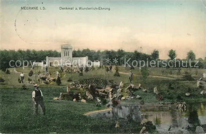 Meerane Denkmal zur Wunderlich Ehrung Meerane postalisch gelaufen 1910 Erhaltung siehe scans [FriedD77] Frierer
