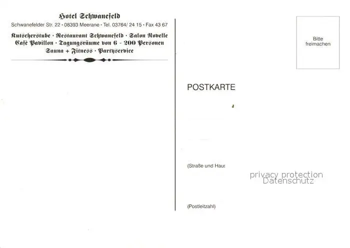 Meerane Hotel Schwanfeld Meerane postalisch nicht gelaufen nach 1965 Erhaltung siehe scans [LiesaD40] LiesID40
